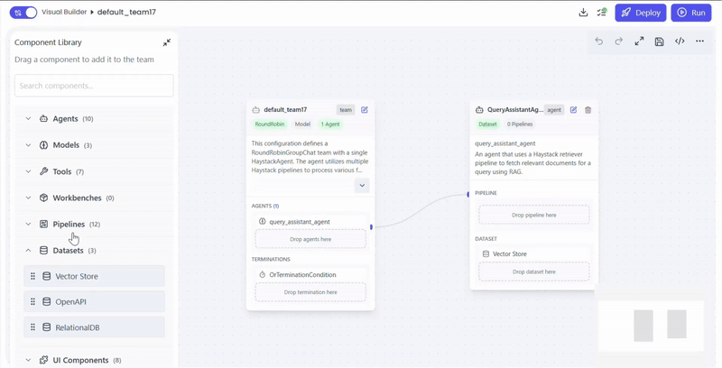 QueryAssistantAgent is a natural language–driven retrieval agent that interprets English queries, selects and executes the appropriate pipeline, and retrieves data from one or more configured datasets such as vector stores, relational databases, or external APIs. It supports multiple pipelines—including Retriever, VectorQuerier, OpenAI, and SQL Query pipelines—which can be used individually or combined to handle both semantic and structured searches. The agent aggregates and normalizes results into a consistent response and optionally uses caching to improve performance by reusing results for repeated or equivalent queries, making it well suited for search, analytics, and intelligent data discovery workflows.