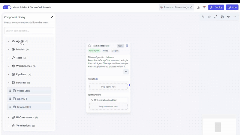 - Drag and drop TeamExecutorAgent into the canvas
