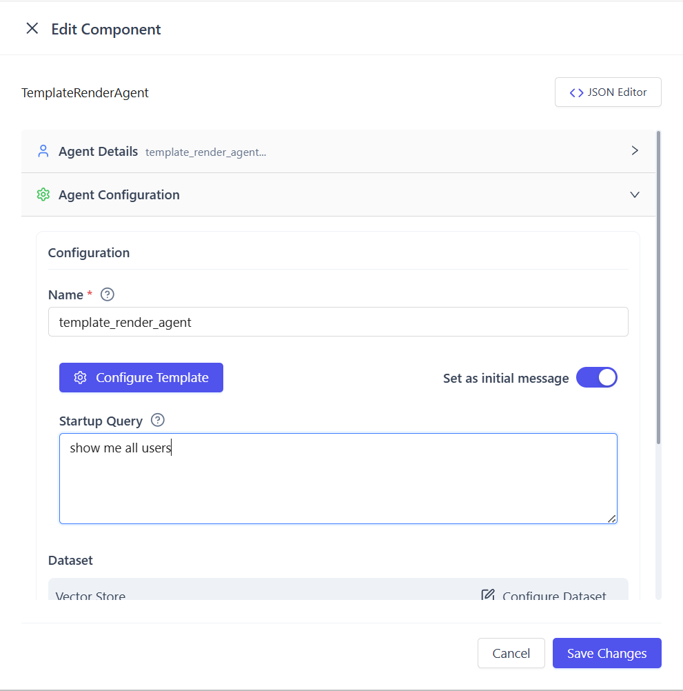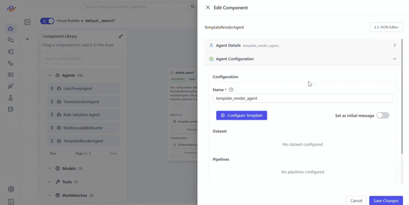 TemplateRenderAgent provides a configuration toggle named Set as Initial Message.