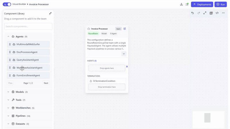 - Drag and drop WorkflowAssistantAgent into the canvas