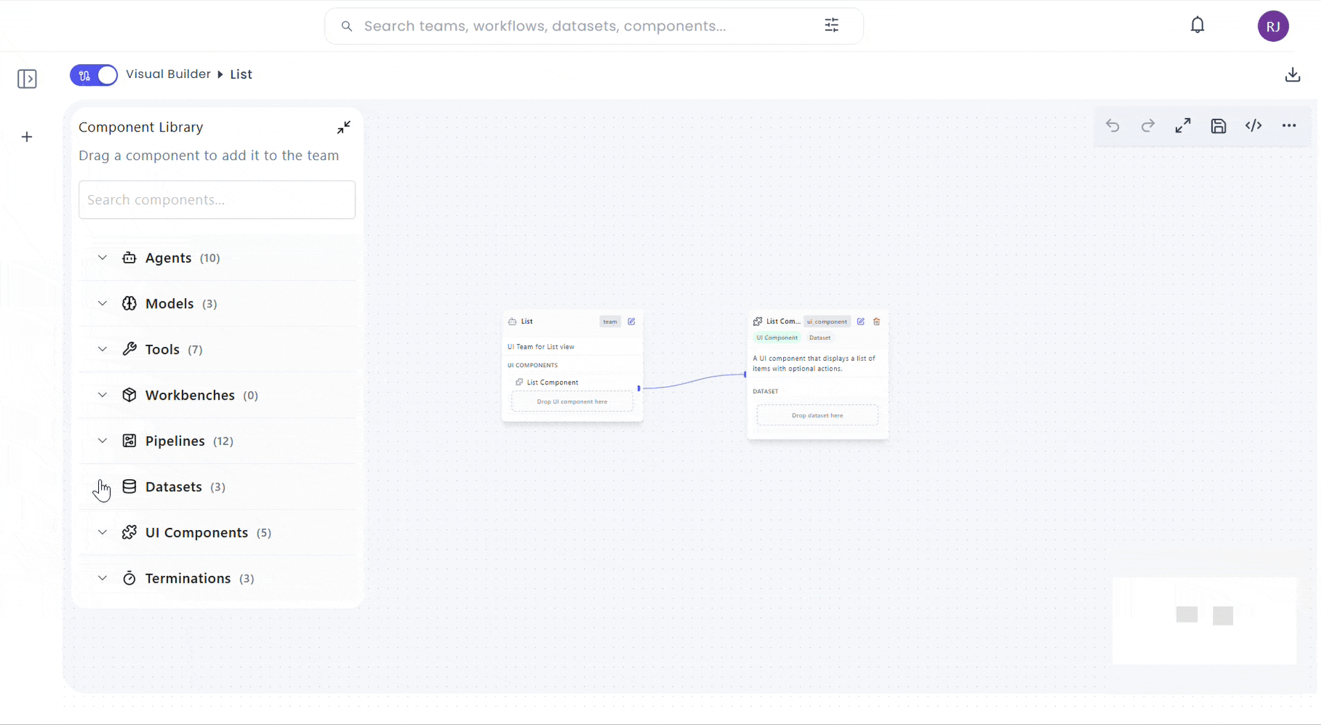 List Component is a UI-focused component used to render structured tabular data from a dataset. It supports dataset binding, field selection, unique identifiers, and visual customization.